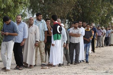 People stand in line to see the body of former Libyan leader Muammar Gaddafi in Misrata, October 21, 2011. REUTERS/Saad Shalash