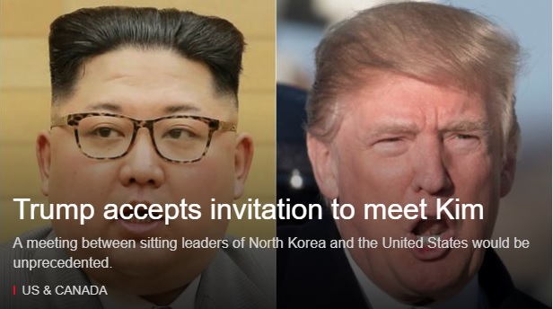 North Korean leader Kim Jong-un and US President Donald Trump are to meet in person by the end of May, it has been announced, an extraordinary overture after months of mutual hostility.