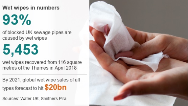 Wet wipes are behind 93% of blockages in UK sewers, a key element of the infamous giant obstacles known as fatbergs, according to Water UK, the trade body representing all of the main water and sewerage companies in the country.