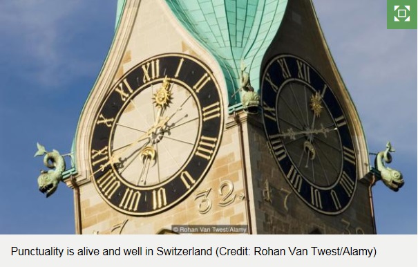 Swiss punctuality: a deep expression of respect for other people. A punctual person is a considerate one. By showing up on time – for everything – a Swiss person is saying, in effect, “I value your time and, by extension, I value you.”